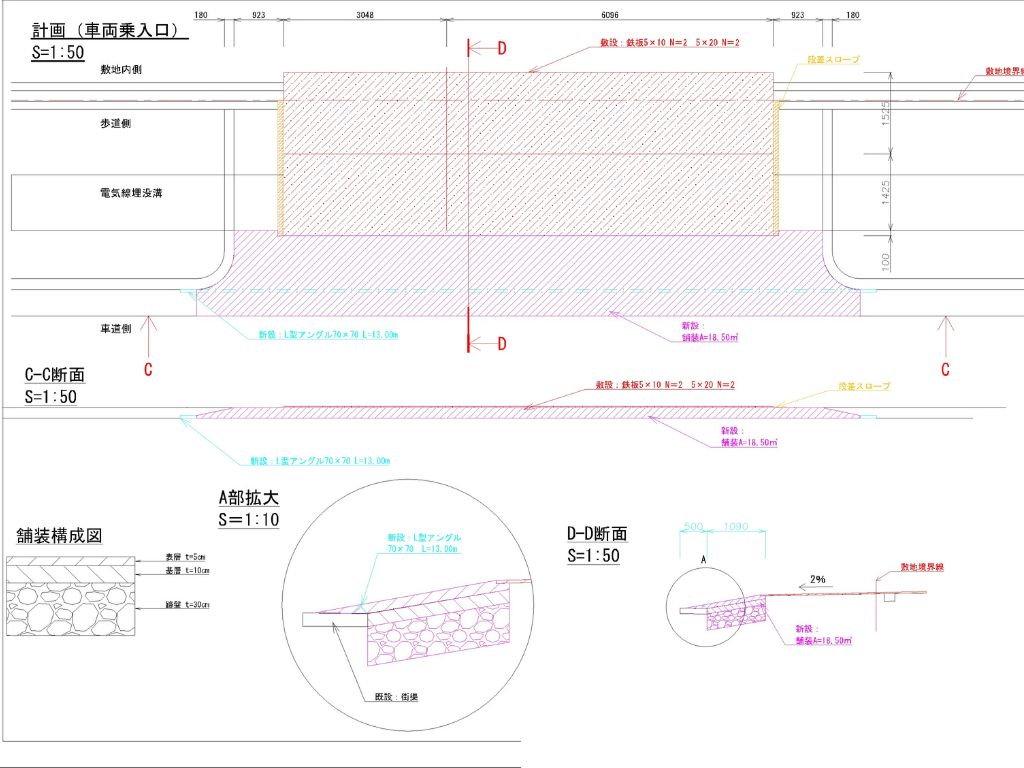 ③計画図(車両乗入口)※受講生(大塚様)が計画図、作業計画図などをレイアウト印刷して客先へ図面を納品し承認された。
