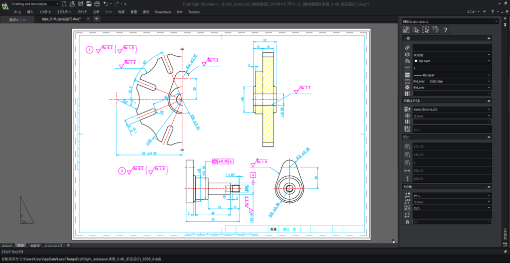 この実用書は、初級から中級レベルにスキルアップできるAutoCAD学習のロングセラーとして、多くの受講者に親しまれています。DraftSighとAutoCADのアイコンや操作の違いも理解しながら練習できます。